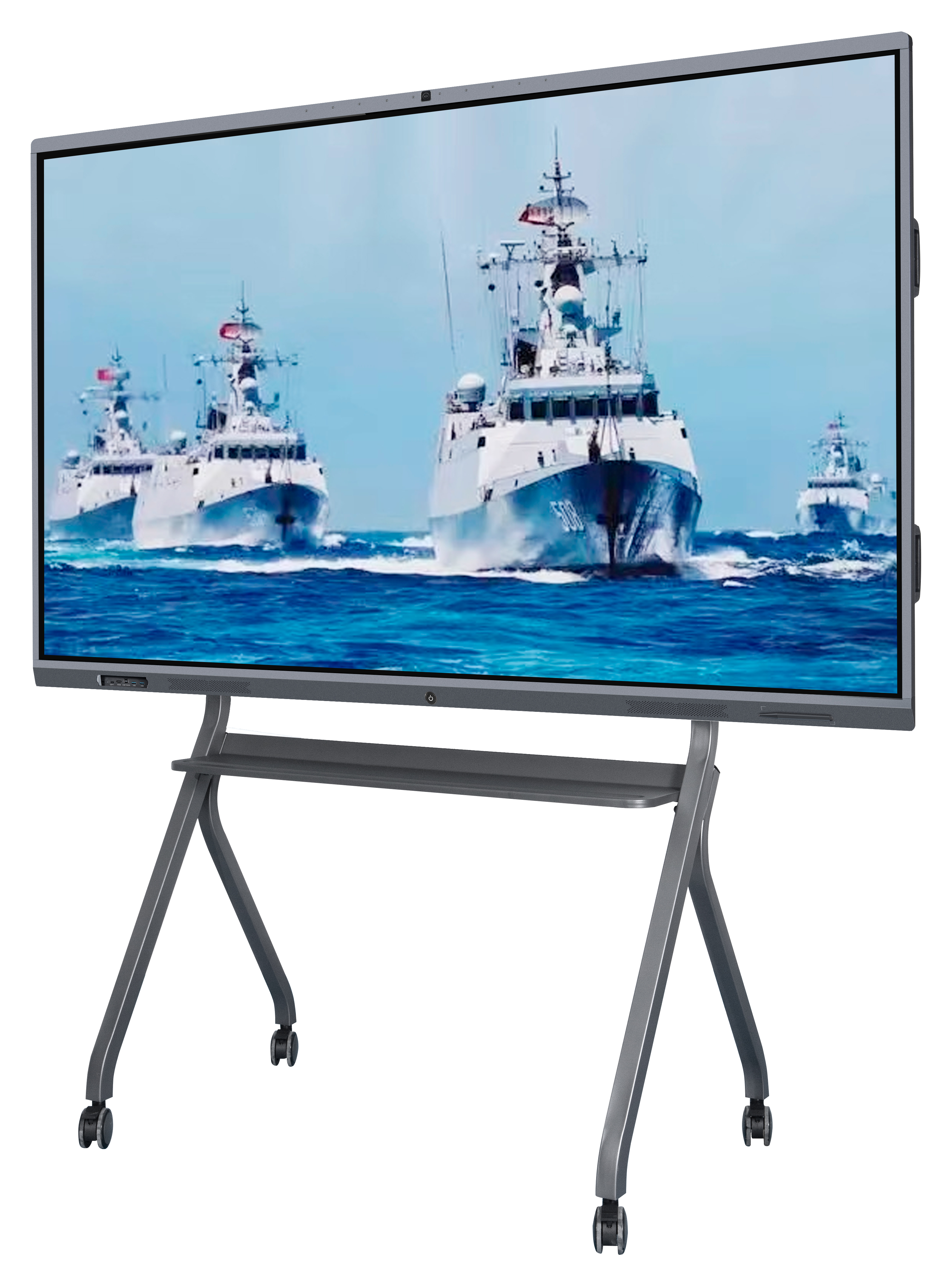 7、 整机下部采用斜下式设计,可防止粉笔灰粘附,也可以避免前置接口插入U盘时被推拉黑板撞到导致U盘或者USB接口损坏。